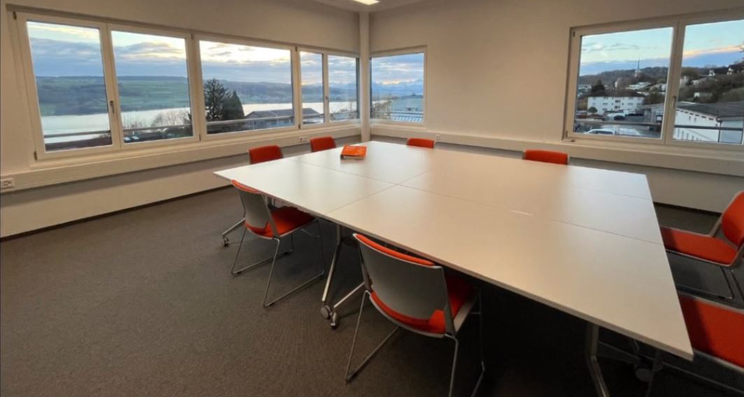 Heute nehmen wir Sie mit in unsere Büros. Dies sind die Arbeitsplätze des Innendienstes. Der Arbeitsplatz des Chefs befindet sich gleich nebenan. Zu unseren Büros gehört ein grosszügiges Sitzungszimmer, indem auch Schulungen stattfinden. Alle Räumlichkeiten mit schönster Aussicht auf den Hallwilersee und die Schneeberge.