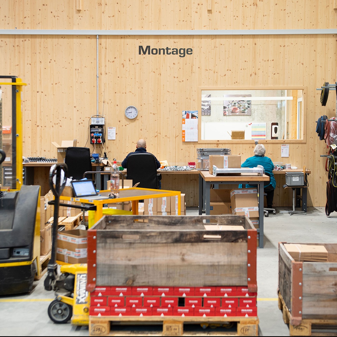 Gerne gewähren wir Ihnen heute Einblick in unsere Montage-Abteilung. Gleich nebenan befinden sich Warenein- und Ausgang mit vier Laderampen.