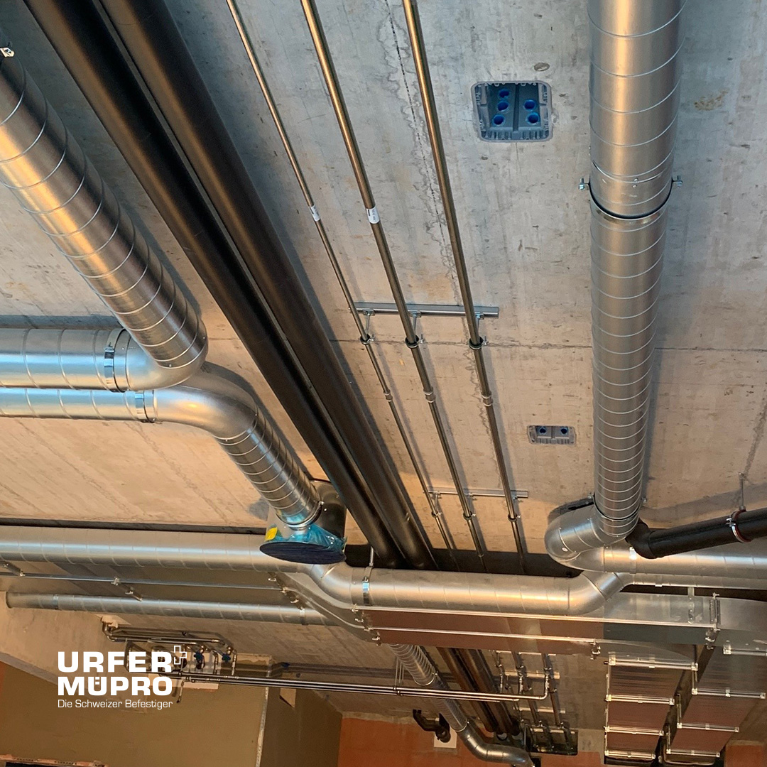 Digital geplante Trassen, Vormontage durch Urfer-Müpro Befestigungstechnik AG. Fristgerechte Lieferung auf die Baustelle inklusive klarer Beschriftung der einzelnen Typen (BIM).
