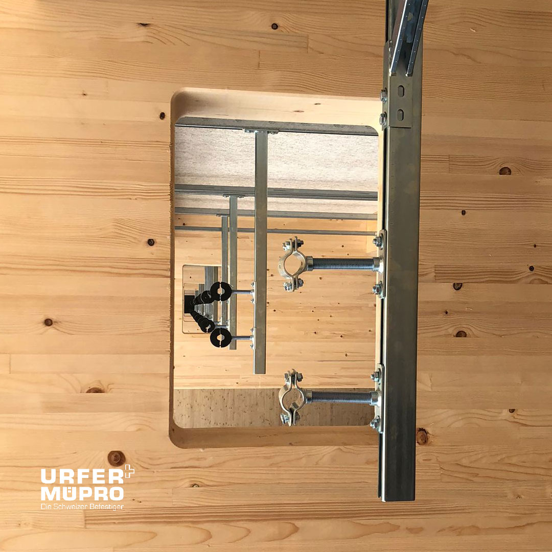 Leitungsführung durch Leimbinder mit Müpro-Schienen.