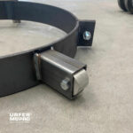 Für leichteren Einzug steht die Rohrschelle auf Rollen (Rollbock). Dabei steht die Kufe nach oben, damit beim Verfüllen des Zwischenraums das Rohr im Zentrum bleibt.