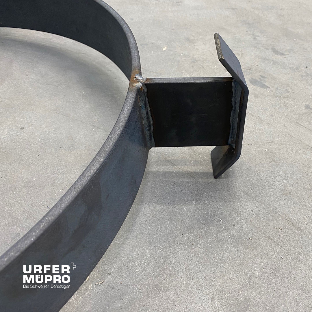 Für leichteren Einzug steht die Rohrschelle auf Rollen (Rollbock). Dabei steht die Kufe nach oben, damit beim Verfüllen des Zwischenraums das Rohr im Zentrum bleibt.