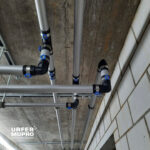 Montage Schienentrassen durch Sanitär. Gleichzeitig wurden Rohrschellen für die Heizungsrohre mit montiert.
