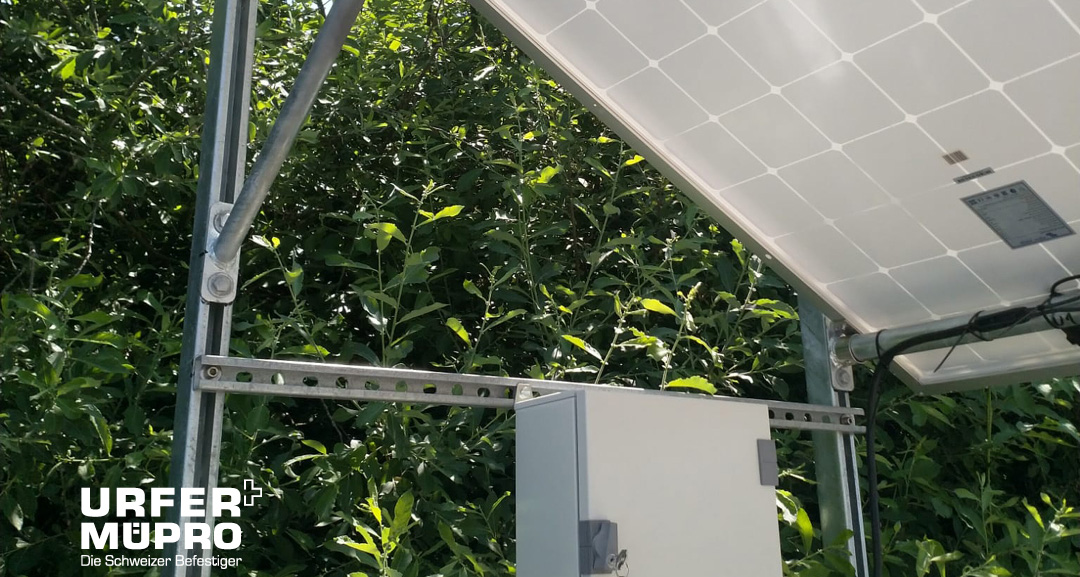 Unsere Lösung: Müpro Schienenprofile (feuerverzinkt), die auf Betonplatten verschraubt wurden und eine massgefertigte URFER-MÜPRO Panelaufnahme.